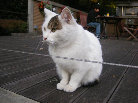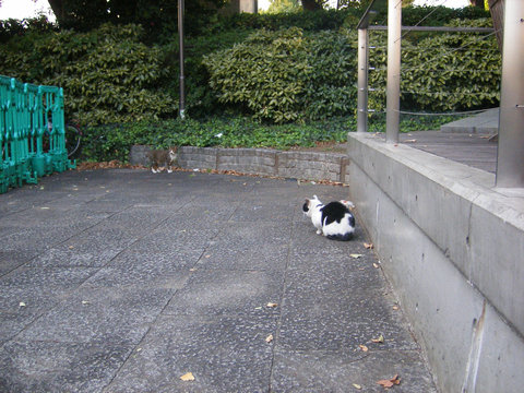 東京文化会館を出て、オープンカフェのほうへ行ってみたら、猫がいました。
