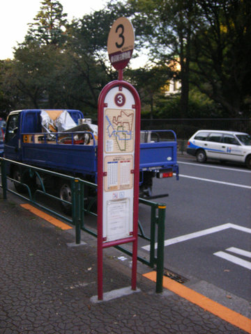 途中で、やけに小さいバス停を発見。台東区を走っている100円バスだそうな。路線図を見てみると、結構遠くまで走ってる。「旧鴎外邸跡地」ってのがありました。おお、気になる!ということで、図書館はやめて、バスにのってみることにしました。